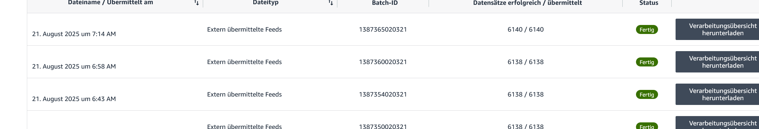 Bei Amazon werden auch ständig Feeds ohne Fehler hochgeladen, nur kann man hier nicht erkennen ob es sich hier um den Angebotss- oder Produktkatalog handelt.