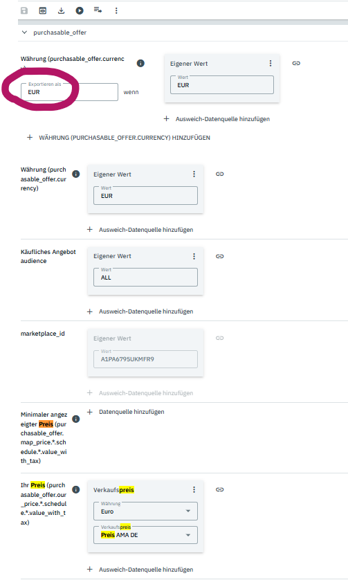 Hat irgendwer eine Idee warum das der Fall ist? Müssen wir hier das Ausweichfeld unten weg lassen, auf das ggf. zugegriffen werden soll wenn eine Eigenschaft in unserem Artikel anliegt zu dem es kein passendes Gegenstück bei Amazon gibt?