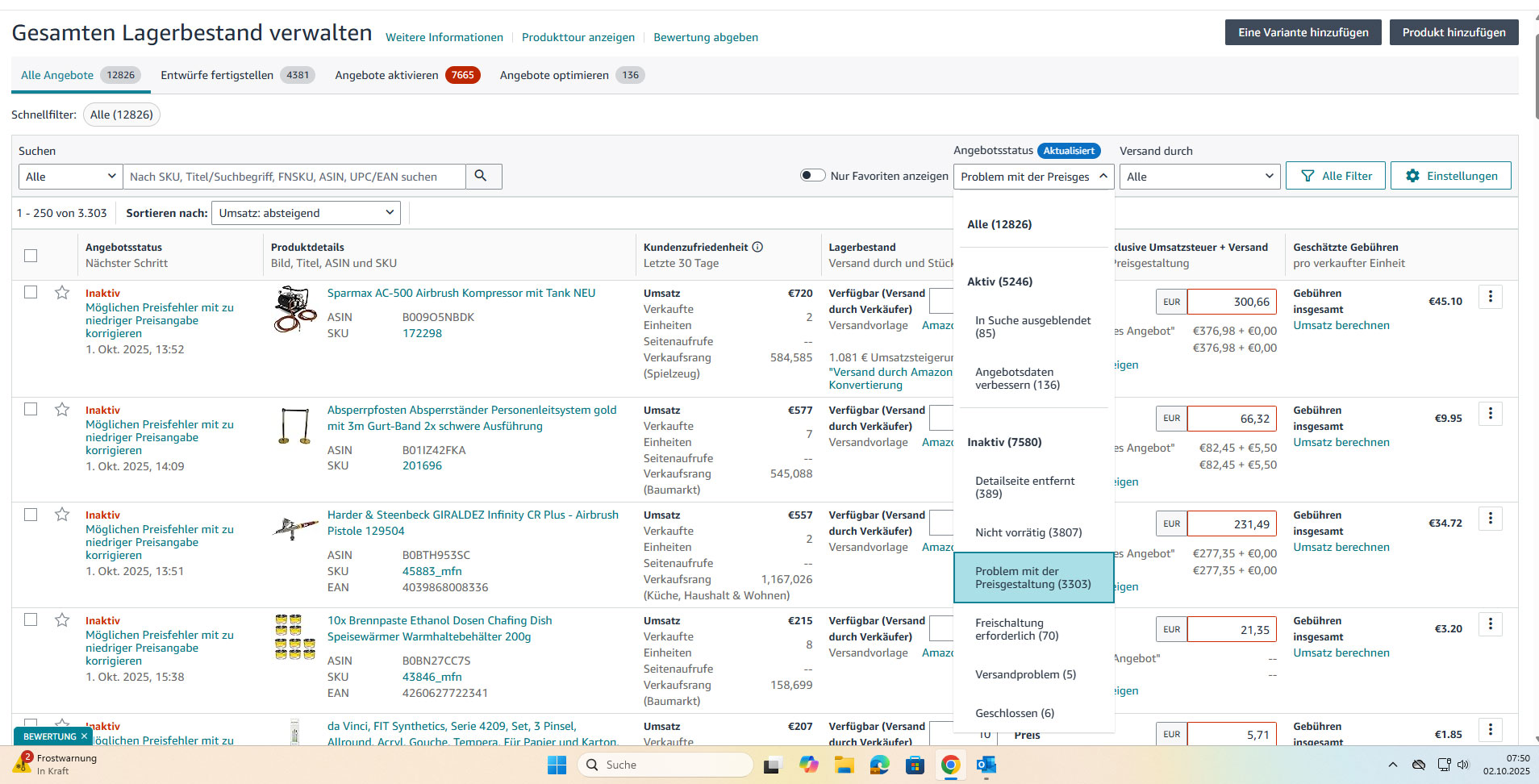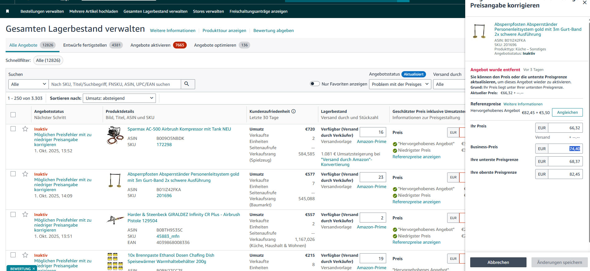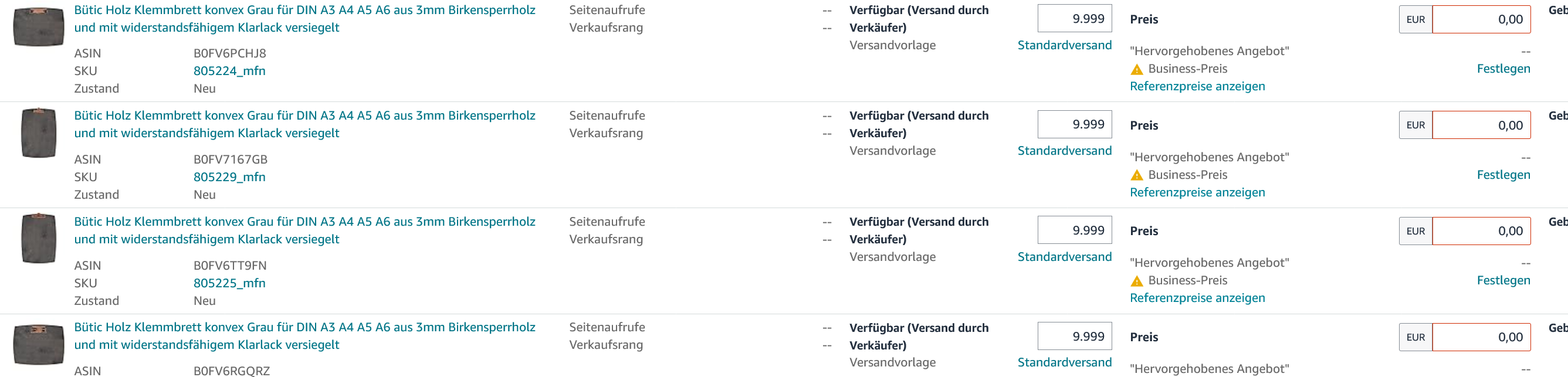 (ich habe mehrfach Bestand und Preis geändert … es wurde in der Seller Central immer nur der geänderte Bestand angezeigt … aber der Preis wird nicht verändert … obwohl der Preis im Plenty immer zusammen mit der Bestandsänderung geändert wurde