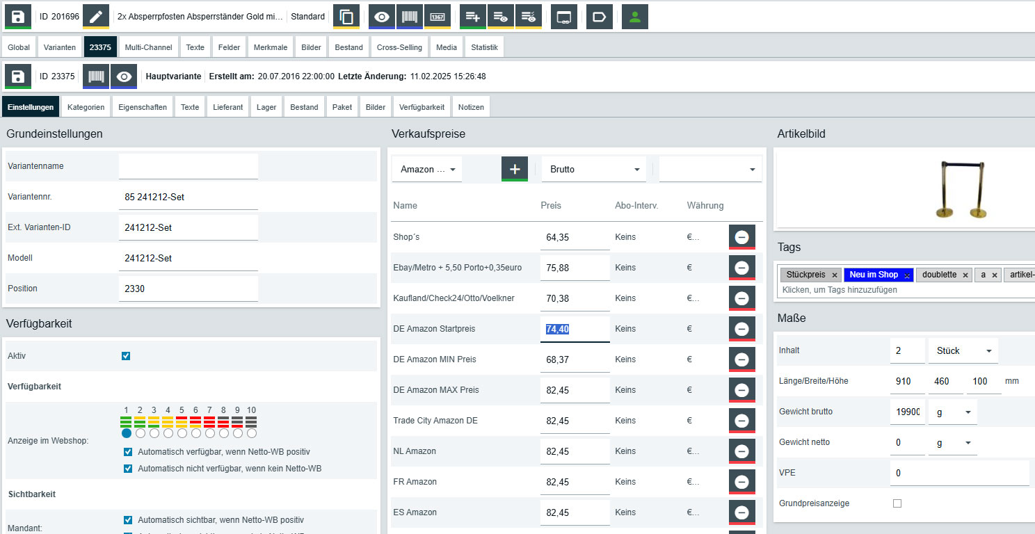 Preise werden bei Amazon geändert wenn ich an einer Variante in plenty den Preis ändere.