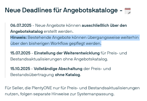 Aber denkt daran, NEUE ANgebote ab 6.7 nur noch über den Offer-Katalog