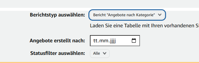 Wenn man gar nicht weiter weiß, man kann unter Seller Central > Lagerbestandsberichte folgenden Bericht herunterladen. Der ist zumindest ähnlich zu dem Offer Katalog und man kann sich da zumindest anhand der Live Daten etwas zusammenreimen