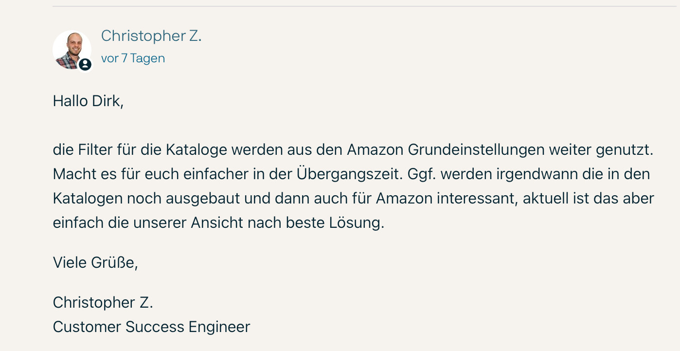 Dann würde aber wenn ich einen Tag setze „z.B. Amazon) nur die Artikel angelegt mit dem Neuen Katalog werden welchen diesen Tag haben? So wie Christopher das schreibt. Das würde doch auch gehen.