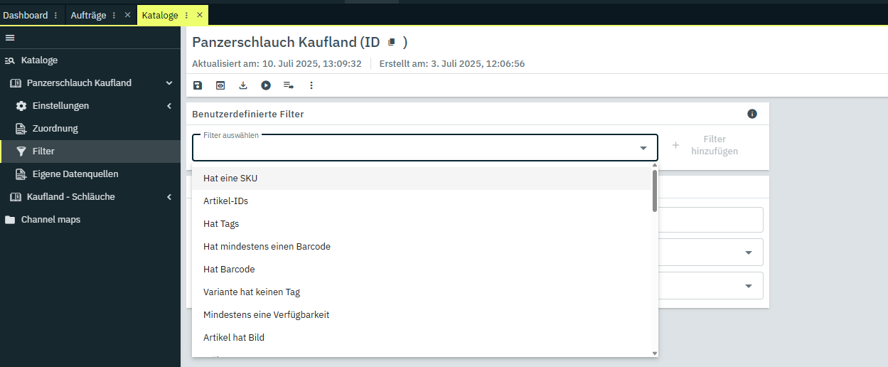 Wenn Du einen Channel Maps ablegest und den bei einem Katalog zuordnest - dann kannst Du auch Filter nutzen: