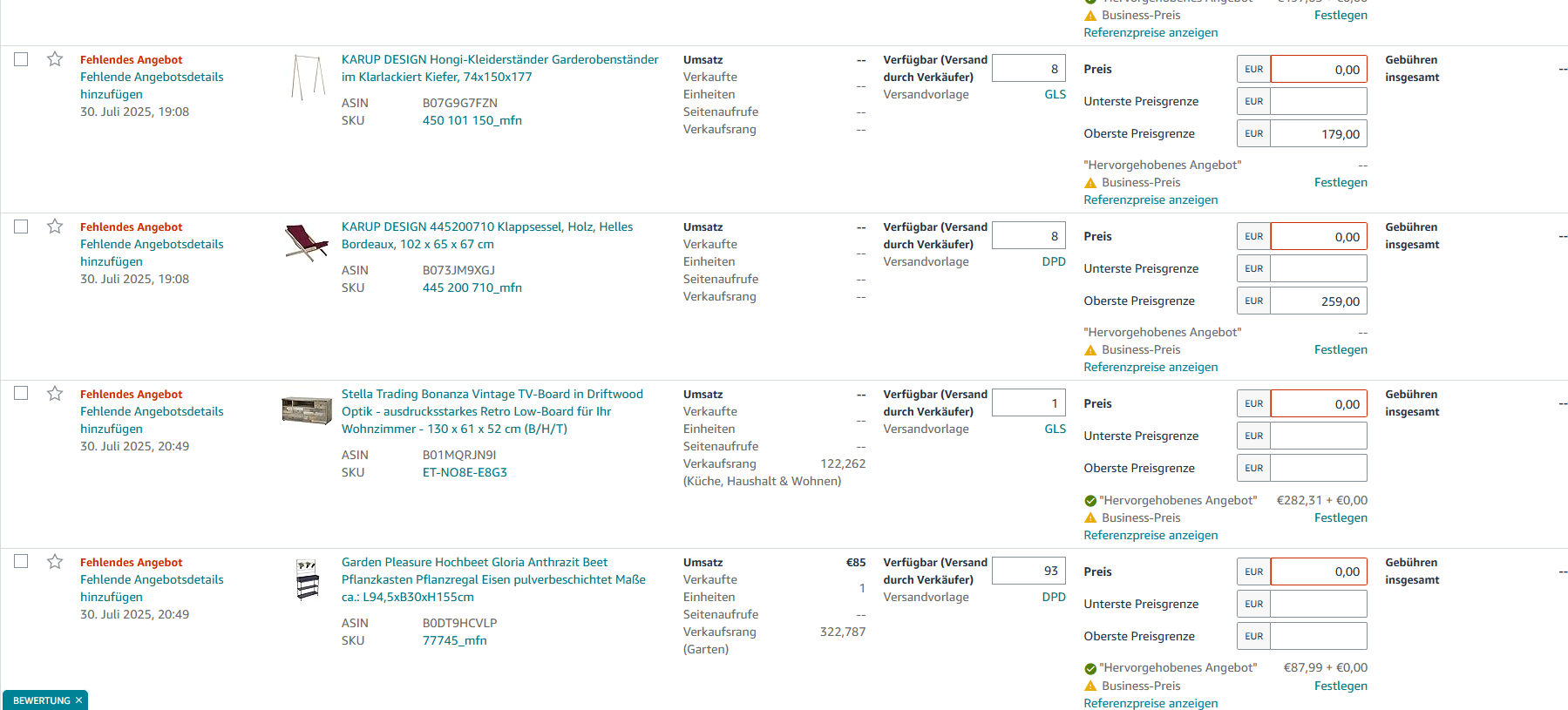 Auch werden Preise aktualisiert, wenn als neuer Amazon Produkt Typ keine unter Artikel Multichannel eingetragen ist.
