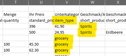 Achtung: Wir haben bei einzelnen Produkttypen festgestellt, dass in der FlatFile die Zuordnung der Werte zu den Spalten um 1 Feld verschoben eingetragen werden!