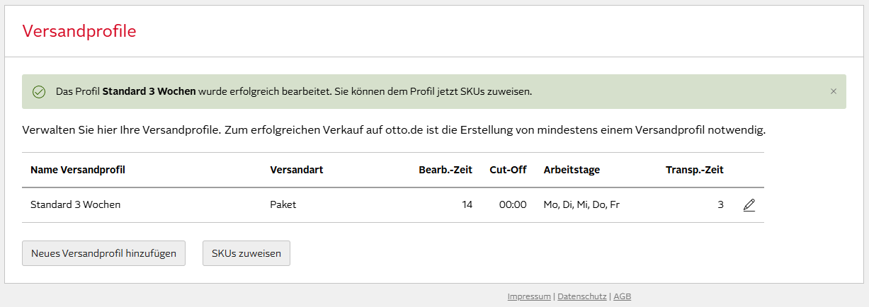 Das Versandprofil wird ja direkt auf OTTO eingestellt, und dort sind auch die entsprechenden Bearbeitungszeiten hinterlegt.