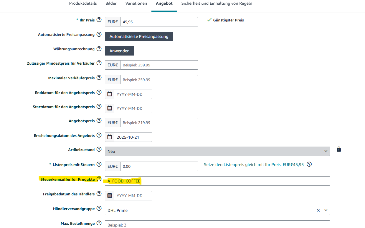 im Rahmen von VCS muss der korrekte Product Tax Code (PTC) mit dem Listing aus plenty heraus übermittelt werden.