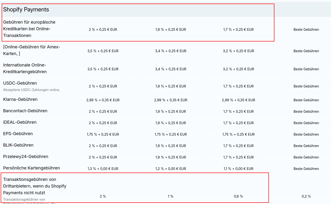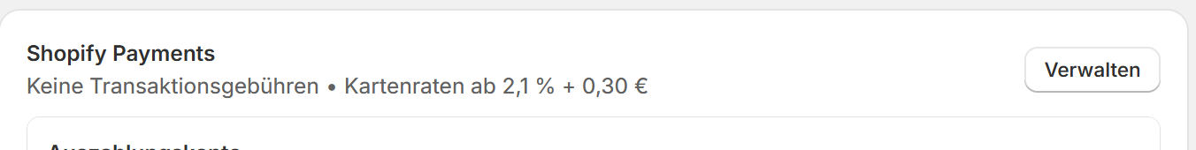 Und die einzige Zahlungsart zu vertretbaren Kosten ist genau Shopify Payments, da man bei externen Zahlungsanbietern immer doppelt zahlt (außer eventuell bei teuren Tarifen).