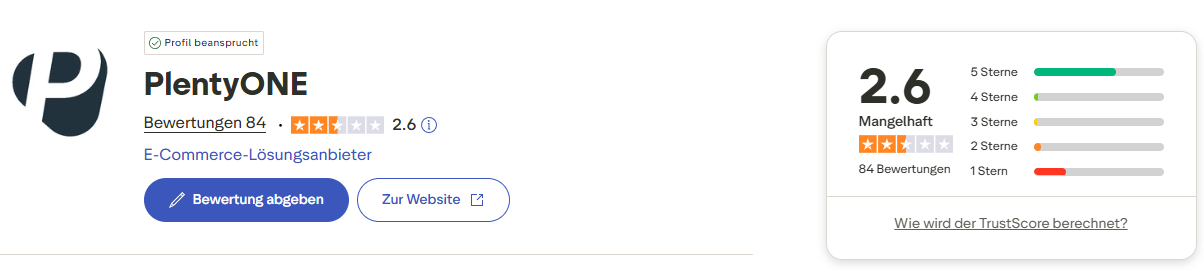 Plenty wäre also mit 51 Ein-Stern-Bewertungen reputationsmäßig ziemlich weit unten, besonders da die Bewertungen aktuell sind (nur 9% aller Bewertungen der letzten 12 Monate sind positiv).