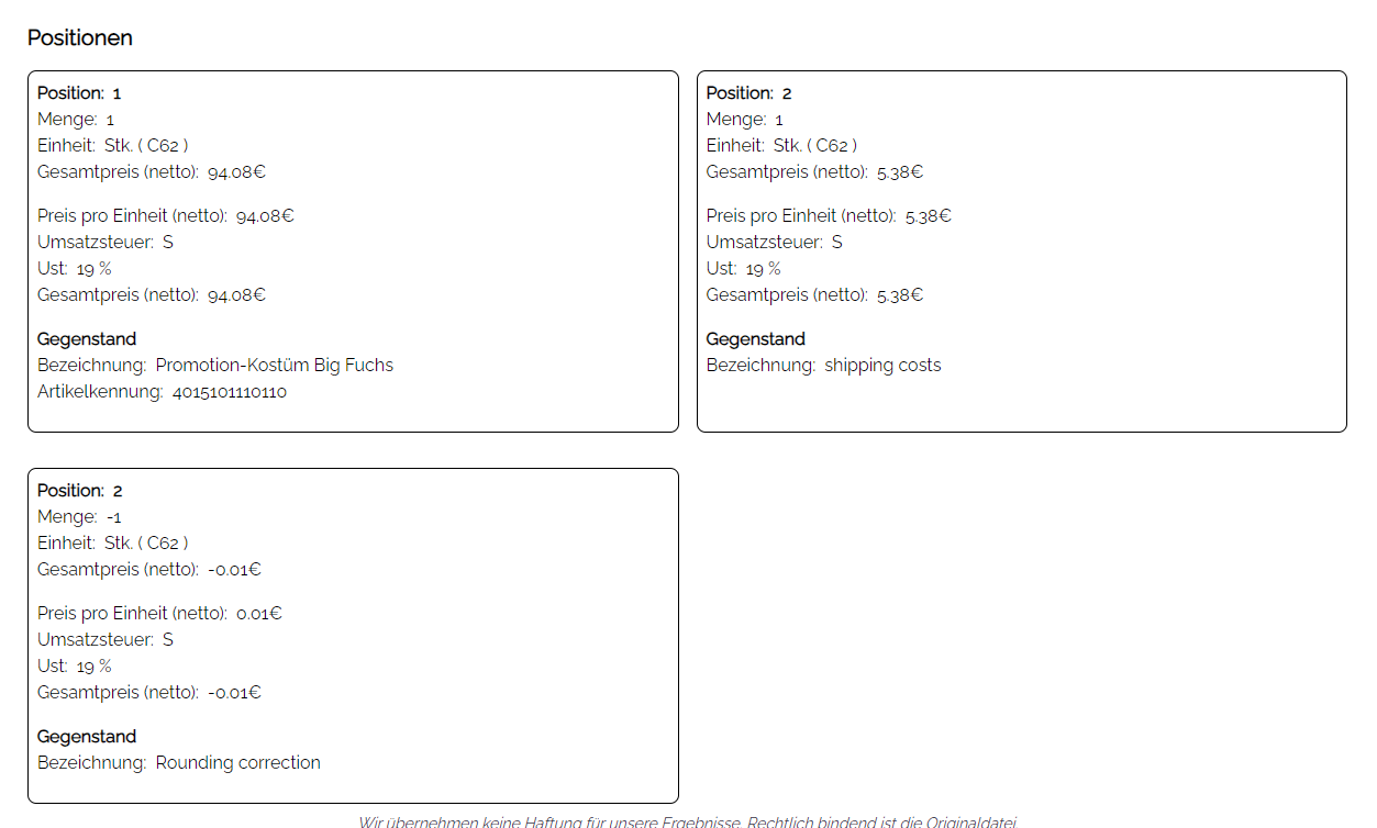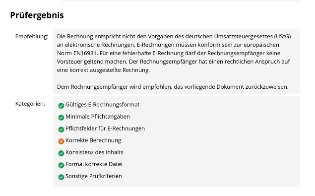 Dem Kunden gegenüber ist man da als Plenty-Händler ziemlich aufgeschmissen, finde ich. Wenn bei uns so eine Rechnung von dem von uns gewählten Tool/Dienstleister als fehlerhaft deklariert wird, würden wir die Ausstellung einer Rechnung fordern, die fehlerfrei ist. Insbesondere wenn ich den Hinweis lesen würde: „Für eine fehlerhafte E-Rechnung darf der Rechnungsempfänger keine Vorsteuer geltend machen.“.