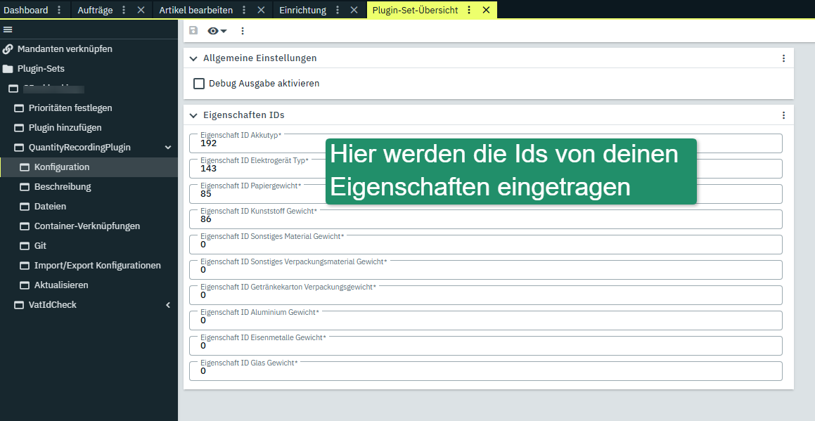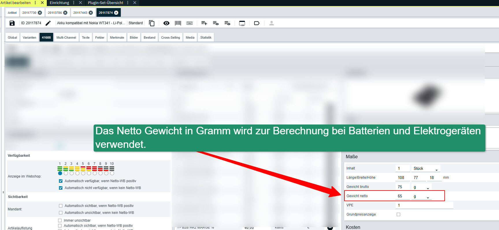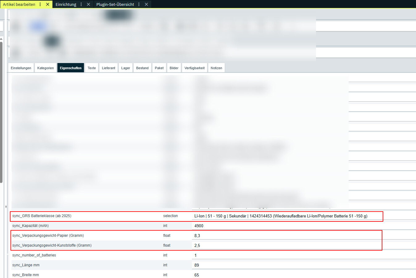 Hinweis: bei Batterien und Elektrogeräten muss keine Verpackungseigenschaft hinterlegt werden, wenn der Artikel keine Verpackung hat bzw. diese mit 0 Wert an der Verpackungseigenschaft eintragen.
