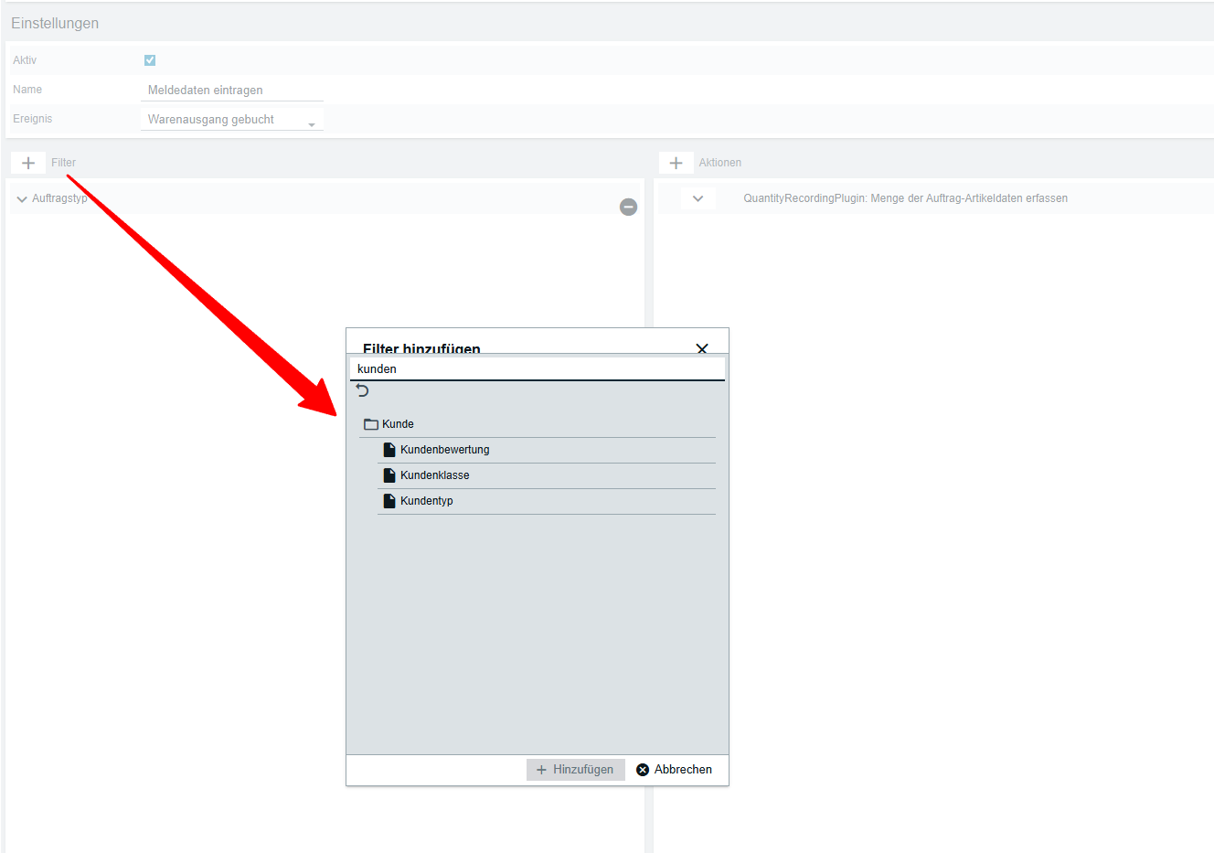 Die Kundengruppen kannst du über den Filter in der Ereignisaktion steuern