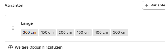 du kannst direkt in Shopify die Varianten sortieren (im Artikel, einfach auf die Varianten gehen, da ist ein Drag & Drop Feld), bringt dir aber nur kurz etwas, wenn du den Export von Plenty zu Shopify an hast. Also entweder bei Shopify alle Produkte pflegen und die Exportrichtung so einstellen, dass Shopify die Änderungen zu Plenty überträgt. Oder den automatischen Export ganz deaktivieren und immer nur selektik aktivieren und über den manuellen Export dann die Artikel exportieren, sodass Bestandsartikel nicht überschrieben werden.