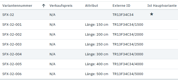 In dem Tab, wo du auch Preise einstellst dann links bei der Variantennummer. (Ich weiß grad nicht wie der Tab genau heißt).