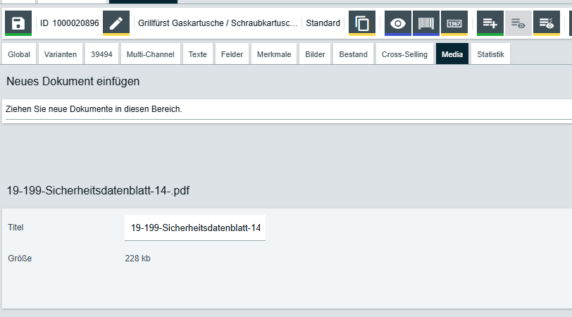 Und für welchen Marktplatz/Export es sein soll. Die URL des PDF wird nicht (in allen) Katalogen ausgeliefert, daher haben wir uns bei einigen unseren Kunden für einen externen Dokumentenserver entschieden, auf dem die Daten liegen und in plenty ist nur eien Eigenschaft vom Typ Zeichenkette oder Text, in der die URL steht.