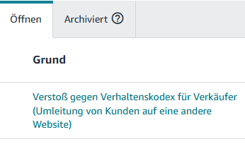 Wir hatten aktuell das Thema das amazon scheinbar ein neues Keyword in seine Datenbank aufgenommen hat und deswegen haufenweise Angebote wg „Verstoß gegen Verhaltenskodex“ - gemeint ist hier verbotene Angebote - rauskegelt.