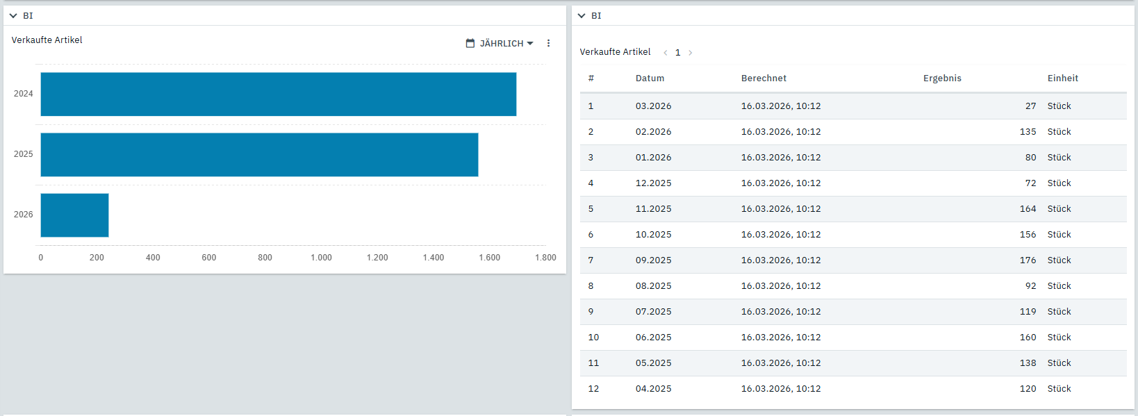 Hat es schon jemand hinbekommen, die alte Artikelstatistik in der neuen BI darzustellen?