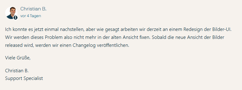 Ich tippe, dass die da dann gerad umbauen. Ich habe in der neuen Artikel-UI Feedback zum Reiter Bilder gegeben. Dieses wird nicht mehr berücksichtigt.