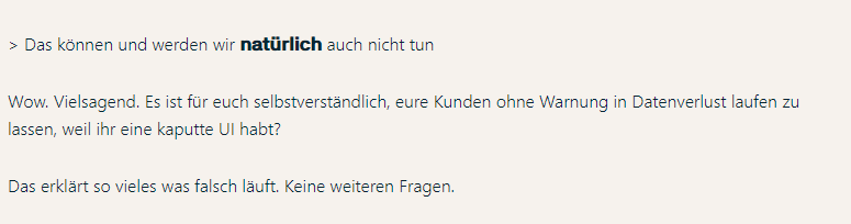 Ist ja doch irgendwie tröstlich und traurig zugleich, wenns nicht nur im eigenen System auftritt.