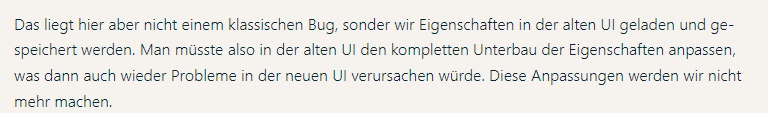Wirds nicht. Es gibt einen kapitalen Bug, der dafür sorgt dass durch den bloßen Aufruf der alten Artikel-UI die Werte von Auswahl-Eigenschaften verloren gehen. Verschwinden einfach. Nur weil man den Artikel öffnet (ich glaube, man muss auch in den Eigenschaften-Tab wechseln, kA, nicht mein Bug, ich bin da nie)