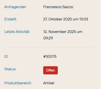 ich habe mir einmal verschiedene Ticketnummern aus den letzten Monaten angesehen. Zwischen 31.07.2025 und 19.11.2025 wurden dabei rund 12.080 Tickets erstellt – also ungefähr 100–110 neue Tickets pro Tag.