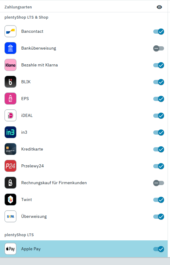 Wir haben es ebenfalls als Zahlungsmethode aktiviert. Alles wird über Mollie gesteuert und die Zahlungsmethode wird im Shop nur angezeigt, wenn ich die Seite mit einem Apple-Gerät besuche.