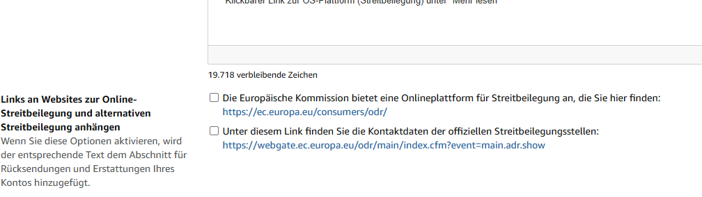 Bei Otto.de scheint es keine Möglichkeit zu geben, die Angabe der Streitbeilegung im Impressum zu deaktivieren. Ich vermute das wird global Plattformseitig gesteuert?