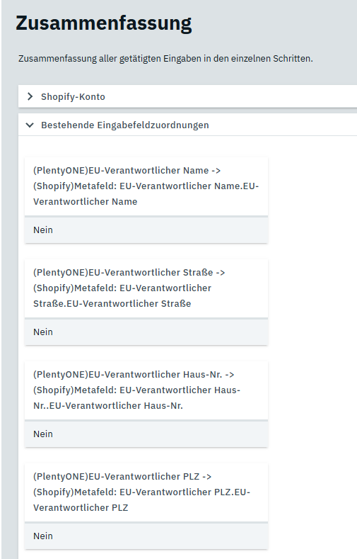 wenn ich Metadaten von Plenty zu Shopify übertragen will, dann richte ich dies doch hier ein: