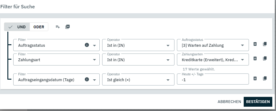 Und in der Suche greifen dann diese Filter: