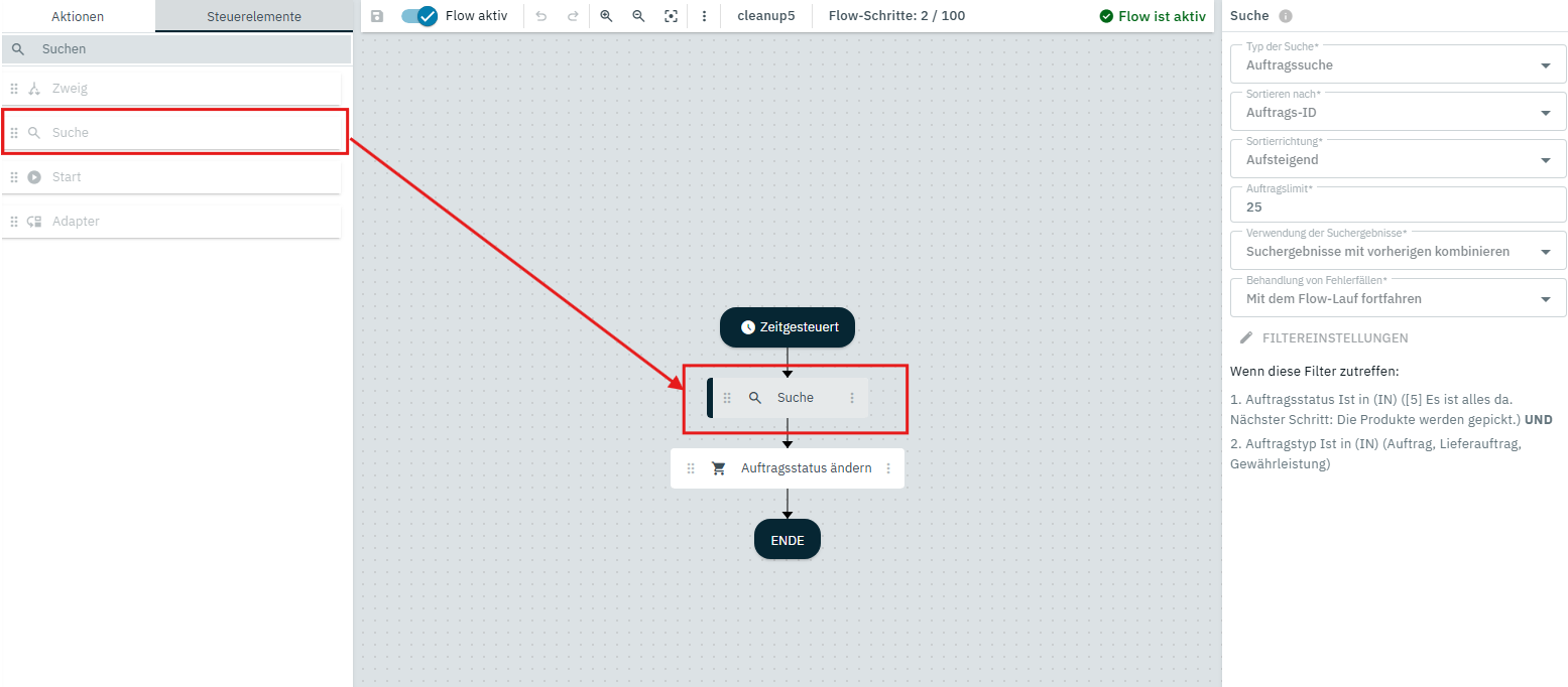 du brauchst eine Suche, sonst weiß der Flow nicht, mit welchen Aufträgen er arbeiten soll.