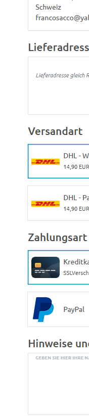 Seit einigen Tagen fehlen fast alle Zahlungsarten im Shop für Kunden aus der Schweiz.